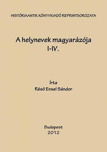 Réső Ensel Sándor 4 füzetben kiadott munkája a magyar helynevek etimológiai jelentéstartalmára keres magyarázatot. Hasonmás kiadás.